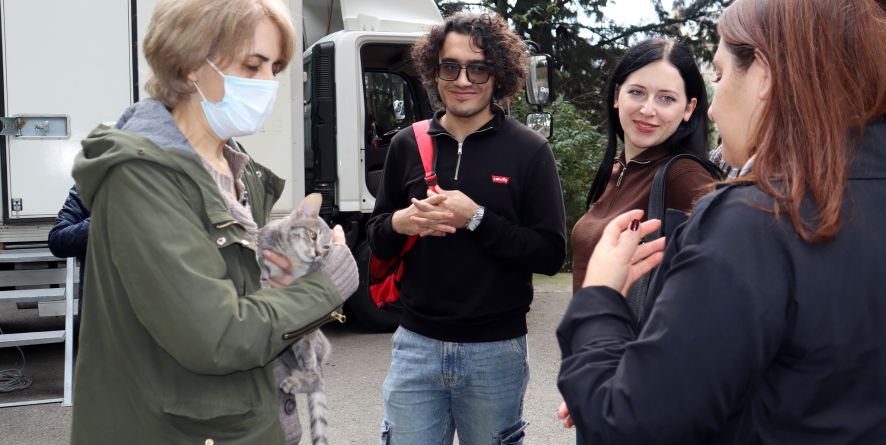 ცხოველთა მონიტორინგის სააგენტომ მიუსაფარ ფისოებზე მზრუნველ მოქალაქეებს, მობილურ ვეტერინარულ კლინიკაში უფასო სტერილიზაციის მომსახურება შესთავაზა. ამჯერად, მობილური ვეტკლინიკა კატებს ნუცუბიძის 1 მ/რ-ში მოემსახურა.