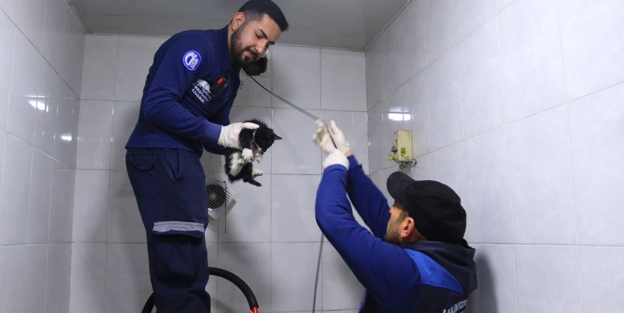 გამოძახება დაფიქსირდა თემქაზე, მე-3 მიკრორაიონის მესამე კვარტალის 43 კორპუსში, სადაც მე-7 სართულის საჰაერო მილში იყო პატარა ფისო ჩავარდნილი.